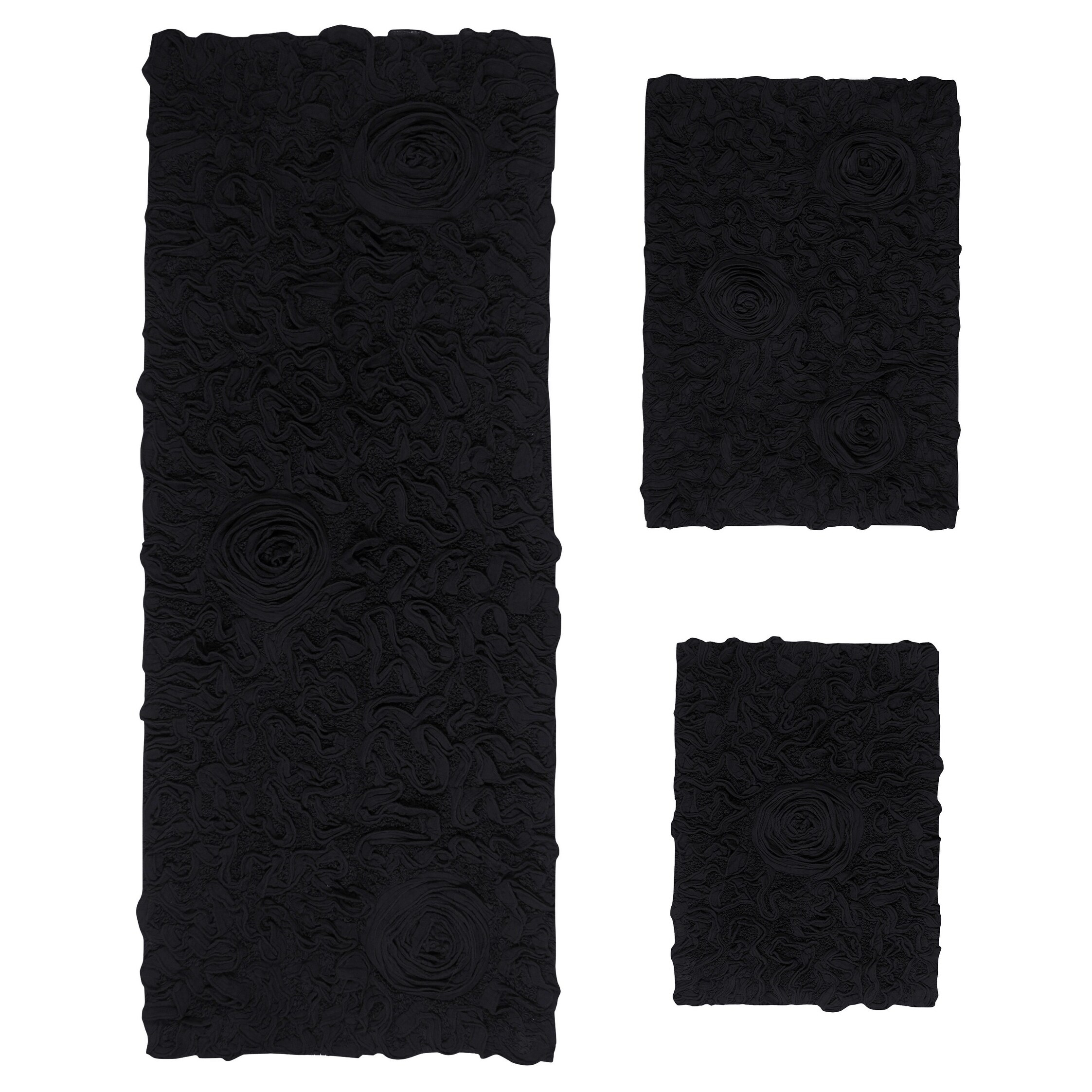 Non-slip 3-piece black memory foam bath mat set for bathroom comfort
