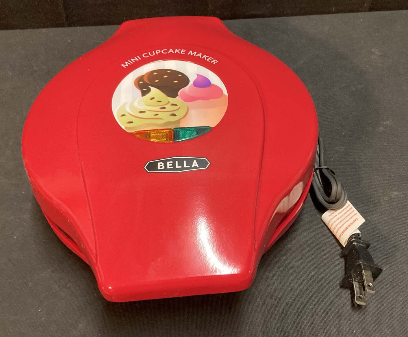 This Bella Cucina Mini Cupcake Maker has been tested in good working condition. It comes in good, clean condition with no chips, cracks, or breaks. Please note that the outside box has some cosmetic imperfections and some sticker residue. Please see pictures for. If you have any questions or concerns, please do not hesitate to contact us. Check out our other items and message us if interested in more than one listing as combining items could save you money on shipping.