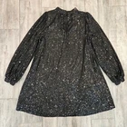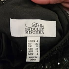 This Belle Badgley Mischka black sequin dress in Women's Size 4 is a stunning statement piece. The dress features an all-over sequin embellishment on a black base, a mock neckline, and elegant long sleeves with gathered cuffs. The sheath silhouette offers a flattering, streamlined fit that skims the body. A concealed back zipper ensures a seamless finish. Fully lined for comfort, this dress is ideal for cocktail parties, evening events, and special occasions. Measurements: Included in the photos. Condition: Excellent pre-owned condition. Keywords: Disco, Occasion, Winter, Holiday, Wedding, Date Night, Night Out, Partywear, Glam, Elegant, Timeless, Classic Silhouette, Quiet Luxury, Understated Elegance, Eveningwear, Old Hollywood, 80s Maximalism, Festive, Black Tie, Event Dressing, Structured, Coquette, Vintage Inspired, Formalwear, Statement Piece