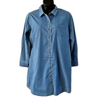 Stay effortlessly stylish with this Belle by Kim Gravel Stretch Denim Button Front Shirt Dress in Size Large. Crafted from comfortable stretch denim, this dress features a classic button-front design, making it perfect for casual outings, work, or weekend adventures. The flattering fit and versatile style can be dressed up with accessories or kept simple for a laid-back look. The high-quality denim provides both structure and flexibility for all-day comfort. Brand new with tags (NWT). Size: Large, offering a flattering and comfortable fit Material: Stretch denim for structure and flexibility Design: Button-front closure for a classic and timeless look Versatile: Perfect for casual outings, work, or dressed-up occasions Machine washable for easy maintenance Content: 64% cotton/24% polyester/10% rayon/2% spandex Length: missy length 37" to 39-1/8 Pit to pit 24 inches #BelleByKimGravel #DenimDress #SizeLarge #ButtonFront #StretchDenim #NWT #NewWithTags #CasualChic #VersatileFashion
