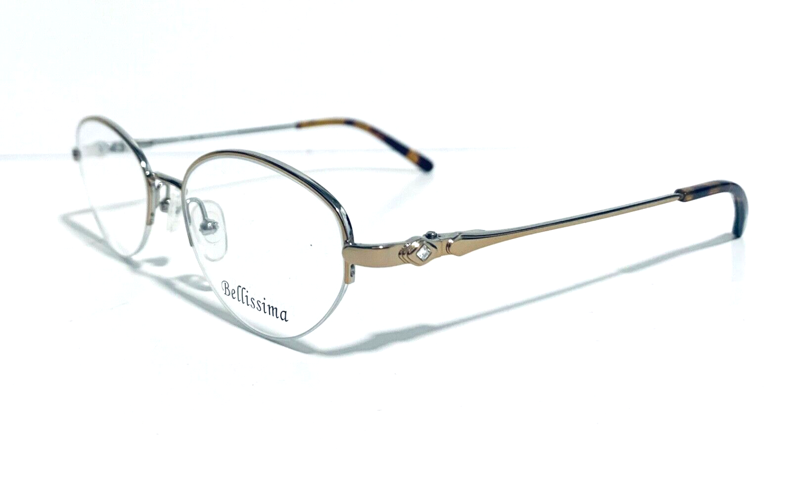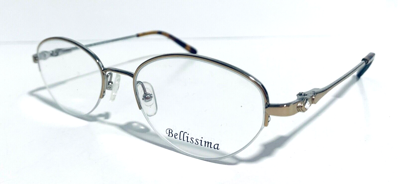 RACCOON STASH WELCOMES YOU! 100% Money Back Guarantee! New AUTHENTIC Bellissima BL 627 Light Gold / Silver Oval Half Rim RX EYEGLASSES Frame Model: Bellissima BL627 Light Gold / Silver Color: Gold / Silver Lens Color: Clear RX Demo Size: 50-19-135 MM The frame is brand new, never used or worn! It is a New Old Stock Frame, demo lenses may have some scratches from handling in store. COMES WITH GENERIC SLEEVE CASE and GENERIC CLEANING CLOTH! All items are packaged carefully for shipping to prevent any damage during transportation. International Buyers - Please Note: Import duties, taxes, and charges are not included in the item price or shipping cost. These charges are the buyer's responsibility. Please check with your country's customs office to determine what these additional costs will be prior to bidding or buying. If you have any questions please feel free to ask. Thank you for choosing us for your optical needs! Item ID: RV 009-149