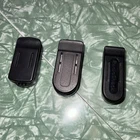 Three belt clips. One is Radio Shack brand. The other two are unmarked.