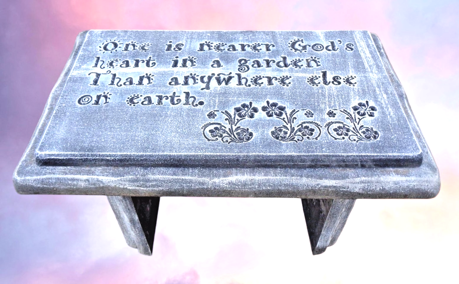 Bench top mold only. Bench Leg molds NOT included with this listing but can be purchased separate in another listing. This listing is for One bench top mould only Nearer to God religious memorial 1/8th" abs reusable ABS plastic concrete/ plaster mold. Mold makes small bench tops that will measure 22" x 13.5" x 2.25" thick. This mold will cast many, many times with proper use. Great for decorative use in a garden or graveside. Can even be used as a memorial stone by itself or display with plaque holder molds made from the molds we sell in our eBay store. Special bench legs for this mold shown in some photos are NOT included in this listing but sold in separate listing in my store. See over 120 bench molds of all designs in my eBay store. Start creating your own garden benches today. Sell your first bench top for more than the cost of the mold. Great to sell to local garden centers, sell online, fundraisers, flea markets, festivals, farmers markets, give as gifts or for your own decorating needs. Casting supplies are available at your local Home Depot, Lowes, etc. Check out our eBay store with over 7000 buy it now molds.
