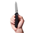 Benchmade 940-1 Carbon Fiber Folding Knife The Benchmade 940-1 Osborne, created by designer Warren Osborne, features a sleek carbon fiber handle paired with a satin-finished reverse tanto blade. This manual-opening folder uses the reliable AXIS® lock system for smooth and secure operation. Specifications Designer: Osborne Mechanism: AXIS® Action: Manual Opening Blade Steel: CPM-S90V (59–61 HRC) Blade Length: 3.40" (8.64 cm) Blade Thickness: 0.115" (2.92 mm) Open Length: 7.87" (19.99 cm) Closed Length: 4.47" (11.35 cm) Handle Thickness: 0.44" (11.18 mm) Weight: 2.44 oz (69.17 g) Blade Details Edge: Plain Finish: Satin Style: Reverse Tanto Clip: Standard, Reversible Tip-Up Handle Material: Carbon Fiber Color: Carbon Fiber This knife is stunning in appearance and comes brand new in its original box, complete with Benchmade drawstring bag and documentation.