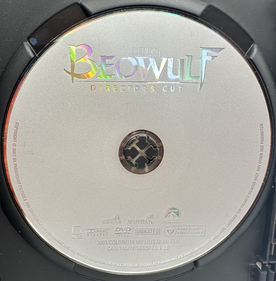 "Beowulf" is a 2007 fantasy film directed by Robert Zemeckis, starring Ray Winstone and Anthony Hopkins. This DVD features the unrated Director's Cut in NTSC format with a run time of 114 minutes. The movie is in English, French, and Spanish with subtitles available in those languages. It comes in a tall/DVD case and includes Angelina Jolie in the cast. The studio behind this action & adventure film is Paramount, released in 2008.