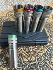 Description 12 ga Extended Shotgun Mobil Choke Tube Beretta/Benelli Mobil Choke Thread (MC) Set (5 pcs with 5 different patterns) Silver Color (F - IM - M - IC - C ) IMPORTANT: There're little coating fluctuations on choke tube's color rings. The product is new and unused. Photos are available but also shared a video to show the fluctuations clearly. Please ask if you need more photos. They're factory new and unused. Please check the photos & video before bidding. Because of the fluctuations, they're discounted. Extended choke tubes protect your barrel from accidental damage and offer the ability to see which chokes you use as they're color coded. Some people find changing extended choke tubes easier because they tighten it by hand although it's always advisable to use a choke tube wrench to ensure that the tubes are fully in their place and safe. Loose choke tubes can be very dangerous. We care about your safety, our choke tube set come with a free choke tube wrench that's worth $10. Also come in a polymer choke tube box. Specifications 12 ga Extended Shotgun Choke Tube Set come with; 5x color coded extended choke tubes ( F - IM - M - IC - C ) Polymer bag Choke tube wrench Choke Tube Diameters F: .685 IM: .695 M: .705 IC: .715 C: .723 Extended choke tubes fit Beretta/Benelli 12 gauge Mobil Choke (MC) thread , also fit many shotguns included turkish shotguns use Beretta/Benelli 12 gauge Mobil Choke (MC) thread. Kindly note that these choke tubes aren't compatible with Beretta Optima Plus/Benelli Crio Plus, Beretta Optima/Benelli Crio or Beretta Optima HP threads. Please make sure or contact us if the choke tubes fit your shotgun. Material is 4140 steel, it's also the material of high quality gun barrels. Use Full Choke (F) for targets at 40+ yards or further. ( Use only LEAD! ) Use Improved Modified Choke (IM) for targets up to 40 yards. ( Use only LEAD! ) Use Modified Choke (M) for targets up to 35 yards. ( Use only LEAD! ) Use Improved Cylinder (IC) for targets up to 30 yards. ( Use LEAD & STEEL! ) Use Cylinder Choke (C) for targets less than 25 yards. ( Use LEAD & STEEL! ) Disclaimer Once you receive your goods, please inspect them for any damage during transit and report the said damage within 24hrs via Ebay messages. We don't accept returns but we refund or send a new product if the cargo is damaged during transport. All photos are the original product's photos; we don't use stock photos, you'll receive what you see on the photos. Please note that if there're any problems, contact us first by giving full details of any problem and we'll gladly help you. If everything's fine, please leave feedback, so we'll be aware that you have received your goods. Shipping Information Available via DHL until the shipment arrives in the USA then USPS delivers to your address. Delivery time is 4-5 business days. Handling time is maximum 2 business days except weekends and holidays. Contact/Questions You can contact us at any time through eBay messages if you have any questions, comments or product requests. We will respond to you within 24 hours and do our best to help you out. We encourage our customers to contact us with any questions or concerns. We'd like to be sure you are completely satisfied with your purchase.