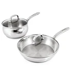 BergHOFF's Belly Shape 7pc Cookware set combines elegance with functionality, crafted from premium 18/10 stainless steel for lasting durability and a stunning mirror finish. The glass lids allow you to keep an eye on your ingredients without allowing essential heat escape from the pot. Each piece are equipped with ergonomic, comfort-grip double-riveted handles and built-in measurement marks, located inside, add convenience and ease of use. Additionally, this cookware set features a 3-layered base bottom for quick and even heat distribution and retention, ensuring optimal cooking performance. Compatible with any cooktop including vitro-ceramic, gas, induction, electric, and glass cooktops. Oven safe up to 440°F. From searing, sauteing and frying to making sauces, soups, stocks, this Free Shipping Over $49.99* Details BergHOFF Belly Shape 7pc 18/10 Stainless Steel Cookware Set with Glass Lids Product Description: BergHOFF's Belly Shape 7pc Cookware set combines elegance with functionality, crafted from premium 18/10 stainless steel for lasting durability and a stunning mirror finish. The glass lids allow you to keep an eye on your ingredients without allowing essential heat escape from the pot. Each piece are equipped with ergonomic, comfort-grip double-riveted handles and built-in measurement marks, located inside, add convenience and ease of use. Additionally, this cookware set features a 3-layered base bottom for quick and even heat distribution and retention, ensuring optimal cooking performance. Compatible with any cooktop including vitro-ceramic, gas, induction, electric, and glass cooktops. Oven safe up to 440°F. From searing, sauteing and frying to making sauces, soups, stocks, this cookware set is perfect for a variety of dishes. Dishwasher safe. Set includesFry pan 9.5", Saucepan 8" 3.2qt., Stockpot 9.5" 5.5qt., Deep Skillet 9.5", and 3x glass lids Set includes high quality 18/10 Stainless steel 9.5" Fry pan, 8" Saucepan 3.2qt., 9.5" Stockpot 5.5qt., 9.5" Deep Skillet with helper handle, and 3x glass lids, featuring long, ergonomically designed comfort-grip handles and mirror finish. The 18/10 stainless steel composition is resistant to rust, staining, and corrosion which ensures the cookware's long-lasting performance and lifespan. This material is non-toxic, free of PFAS and PTFE, making it the healthiest to cook with. Enjoy cooking at high temperatures without worrying about harmful chemicals leeching into your food. With measurement markings located on the inside of the pan, portion control has never been easier. Accurately measure the amount of ingredients you need, ensuring that your dishes turn out perfectly every time. Deep skillet features a helper handle for easy mobility when transferring from stovetop to oven or serving dish. No need to worry about your meal turning out undercooked or overcooked. Featuring a 3-layered base that ensures even heat distribution so that your food is cooked evenly and thoroughly. Compatible with a wide variety of cooktops such as Induction, Electric, Gas, Halogen, Vitro-ceramic. Oven safe without lid up to 440°F, with lid up to 350°F. Discover the key to well-maintained stainless steel cookwarelet cool before washing, gently remove food residue and stains with a sponge or nylon scrubbing pad, wash with warm water and mild soap and steer clear of abrasive materials or harsh detergents. Dishwasher safe.