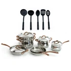 Studio's 11pc Cookware set is designed for energy-efficient cooking and even heat transfer throughout the complete surface. High-quality 18/10 stainless steel lid seals the pots, preventing moisture and juices from escaping. Cookware Set includes: 6.25" 2.5qt covered sauce pan, 8" 5qt covered casserole, 10" 8.1qt covered stockpot, 10" 3.1qt covered deep skillet with helper handle, 8" fry pan, 10" fry pan, 10" steamer insert. Studio's 5pc Nylon tool set is perfect for using with non-stick cookware. Truly a great match with this 11pc cookware set, not to say you can't use it with other pots and pans of course. Set includes: Nylon skimmer, nylon slotted turner, nylon slotted spoon, nylon solid spoon, nylon ladle Free Shipping Over $49.99* Details BergHOFF Ouro Gold 16Pc 18/10 Stainless Steel Cookware Set with SS Lids Product Description: Studio's 11pc Cookware set is designed for energy-efficient cooking and even heat transfer throughout the complete surface. High-quality 18/10 stainless steel lid seals the pots, preventing moisture and juices from escaping. Cookware Set includes6.25" 2.5qt covered sauce pan, 8" 5qt covered casserole, 10" 8.1qt covered stockpot, 10" 3.1qt covered deep skillet with helper handle, 8" fry pan, 10" fry pan, 10" steamer insert. Studio's 5pc Nylon tool set is perfect for using with non-stick cookware. Truly a great match with this 11pc cookware set, not to say you can't use it with other pots and pans of course. Set includesNylon skimmer, nylon slotted turner, nylon slotted spoon, nylon solid spoon, nylon ladle