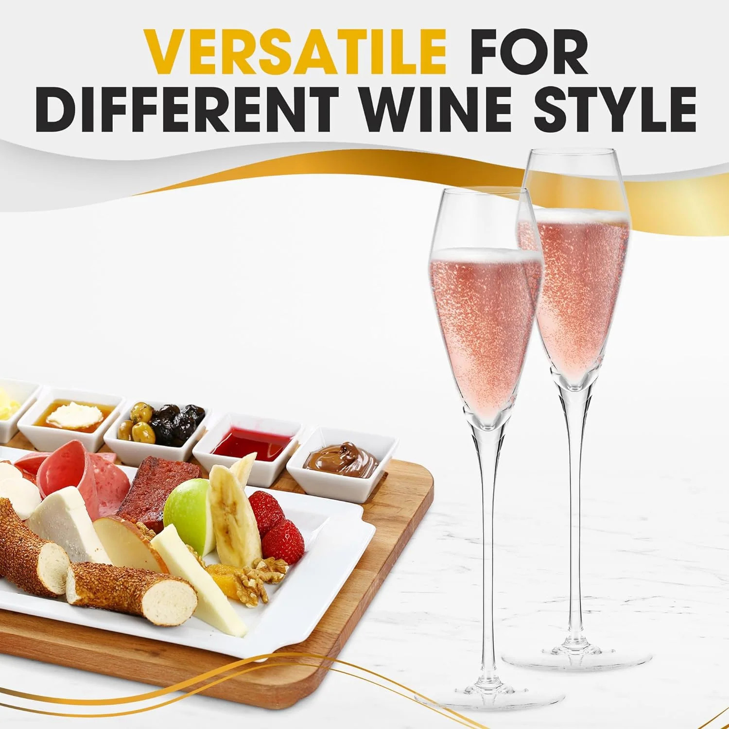 Make any occasion even more special with Luxurious Long Stem Champagne Flutes! This set of lead-free crystal tulip shaped glasses features premium crystal and a long stem. This stemware set will surely surprise your guests and delight even the most sophisticated wine enthusiast. TALL CHAMPAGNE GLASS: Make a toast with an elegant flute for your bubbly, sparkling wine or cocktail PRACTICAL DESIGN: Glass sits comfortably in your hand as you sip and toast at your celebration CELEBRATE & TOAST: Make a statement at any occasion with the tulip shaped champagne flutes QUALITY & STYLE: Lead-free crystal glass, 5.5oz capacity, 10in tall PERFECT GIFT: Thoughtful gift for weddings, house warming parties, birthdays, holidays & more Free Shipping Over $49.99* Details Berkware Premium Crystal Clear Champagne Long Stem Flutes Product Description: Make any occasion even more special with Luxurious Long Stem Champagne Flutes! This set of lead-free crystal tulip shaped glasses features premium crystal and a long stem. This stemware set will surely surprise your guests and delight even the most sophisticated wine enthusiast. TALL CHAMPAGNE GLASSMake a toast with an elegant flute for your bubbly, sparkling wine or cocktail PRACTICAL DESIGNGlass sits comfortably in your hand as you sip and toast at your celebration CELEBRATE & TOASTMake a statement at any occasion with the tulip shaped champagne flutes QUALITY & STYLELead-free crystal glass, 5.5oz capacity, 10in tall PERFECT GIFTThoughtful gift for weddings, house warming parties, birthdays, holidays & more