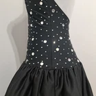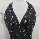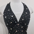 Bern Shaw Studded Rhinestones Party Goth Vixen Halterneck Mini Dress Sze 4 Black ▪︎In excellent used condition, no stains, no holes, no rips, except that some of the thread are pulled out. Please check photos for details ▪︎Pull-on style, fit and flare, ▪︎Studded rhinestones all throughout ▪︎Very sexy, unlined ▪︎From Smoke free and pet free house ▪︎If you like it, make an offer all reasonable offers accepted Measurements ☆Length- 35.5 inches Neck to Hem ☆Waist- 10.5 inches lay flat ☆Bust- 12.5 inches Pit to Pit glam, retro, vintage, goth, sexy, party, disco, concert, birthday, Studded, rhinestones