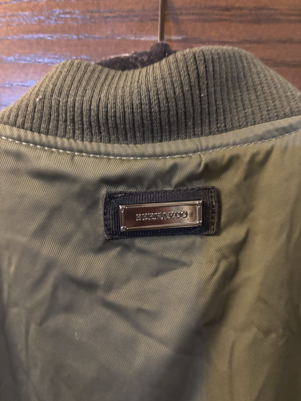 The Bernardo Men's Olive Green Bomber Jacket in size L is a stylish outerwear piece made of polyester. This jacket features a full zip closure and is designed in a classic bomber style, perfect for casual and trendy looks. The olive green color adds a touch of versatility to the wardrobe, making it a great option for everyday wear. With the Bernardo brand known for quality and craftsmanship, this jacket is sure to provide both style and comfort for the wearer.