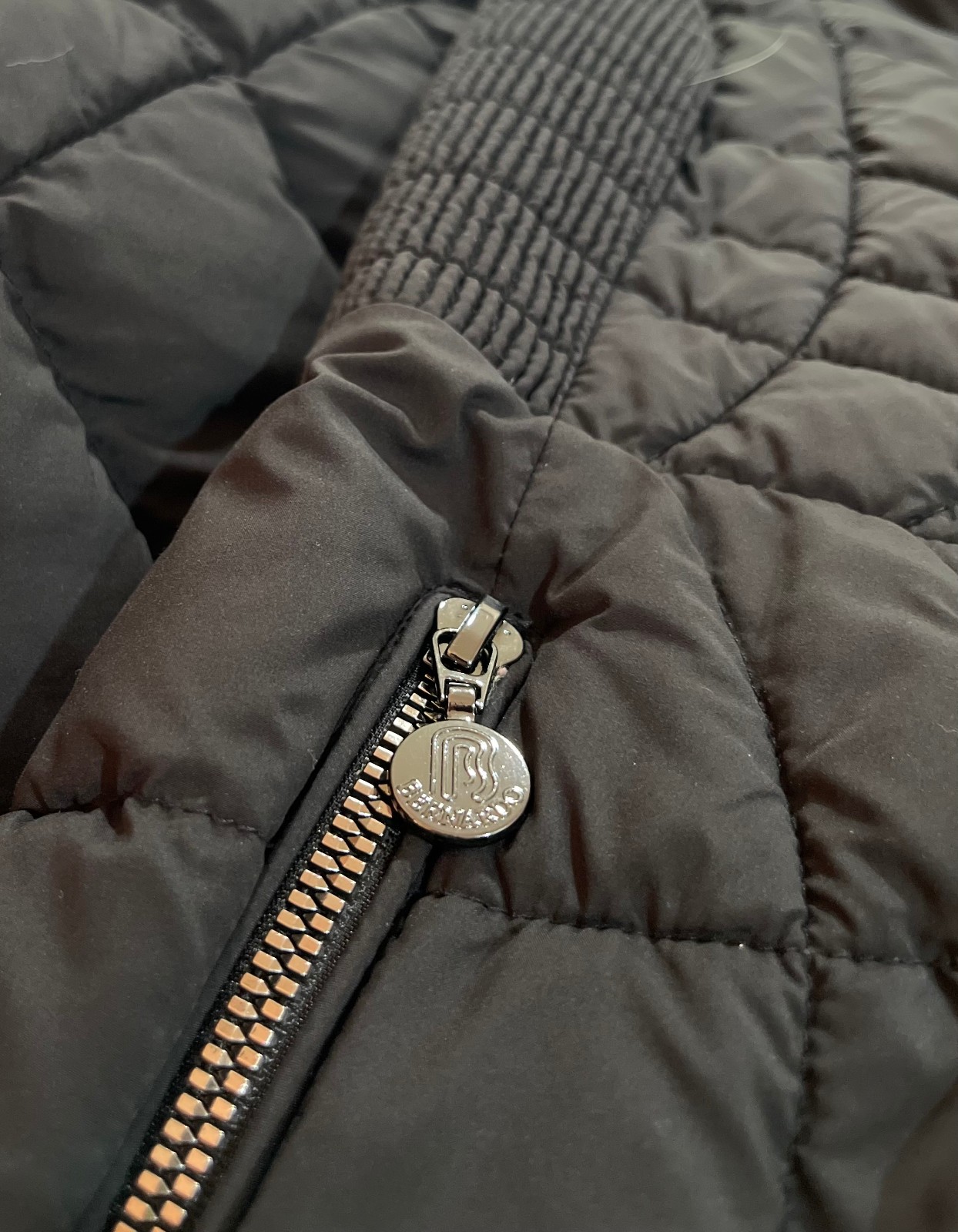 The Bernardo Women's Black Quilted Puffer Jacket in size M is a stylish and practical choice for the winter and fall seasons. Made with polyester outer shell material and nylon lining, this jacket features a zip closure and a fleece fabric type for added warmth. The quilted accents add a touch of sophistication to this casual yet fashionable puffer jacket. Ideal for outdoor activities, this jacket combines comfort and style effortlessly, making it a versatile addition to any woman's wardrobe. Top to bottom 27” Pit to pit 19” Shoulder to shoulder 15 1/2” Sleeve length 24”