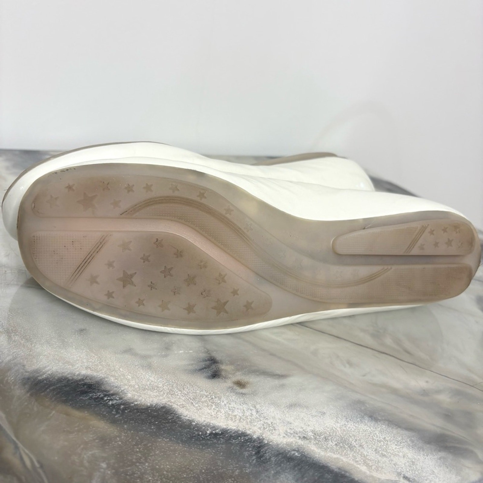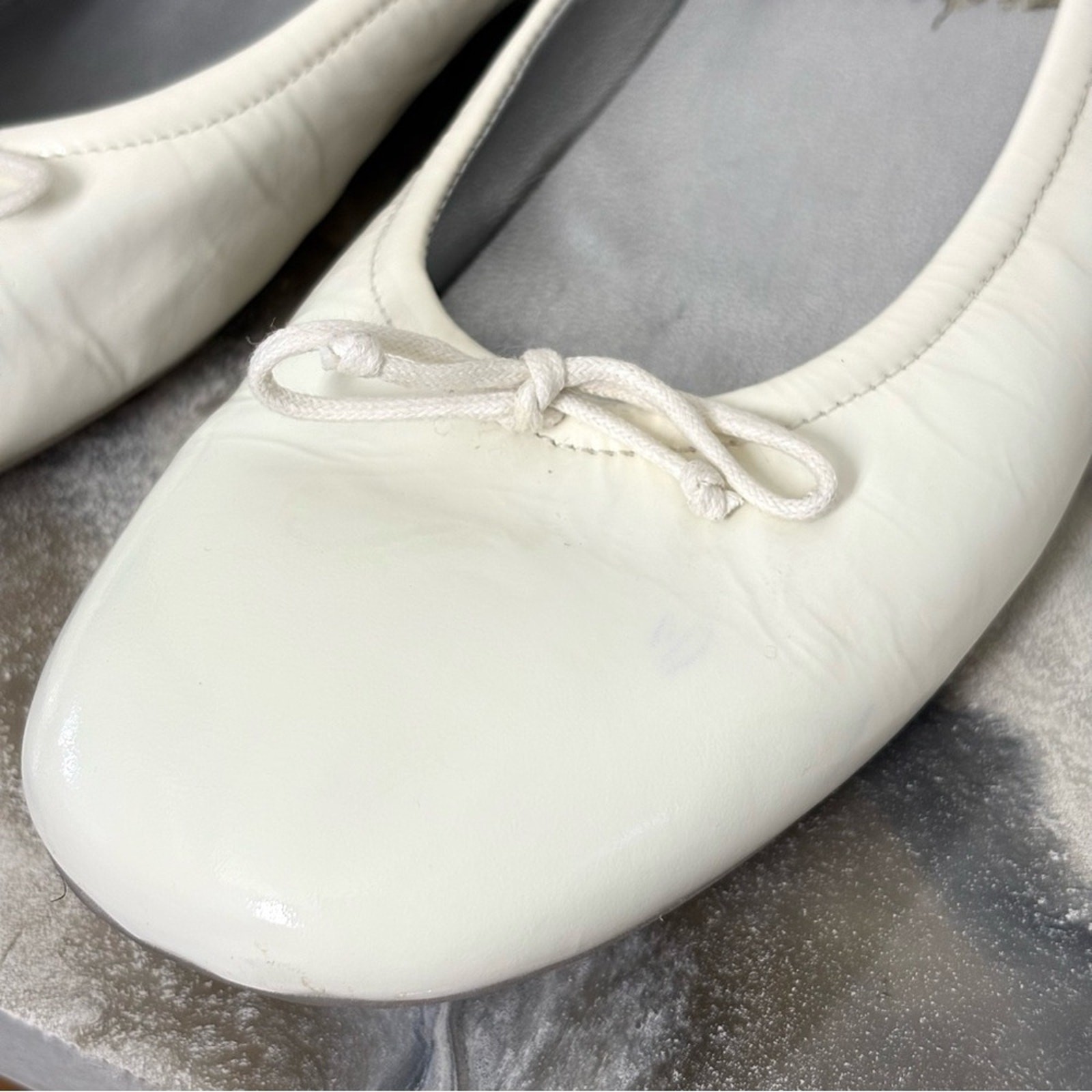 Details: • Brand: Berne Mev • Style: Ballet flats • Color: White / Cream patent leather • Material: Leather upper, synthetic lining, manmade sole • Features: Rounded toe, bow detail, star sole tread, slip-on style • Condition: Pre-owned, light wear to uppers with some marks (see photos), soles show gentle wear but plenty of life left 📦 Ships same or next business day 📦 ⚠️ Disclaimer: Measurements are approximate and colors may vary slightly due to screen/lighting differences Keywords: Berne Mev ballet flats, white leather flats, classic round toe shoes, bow detail shoes, slip-on patent flats, versatile dress flats, workwear ballet flats, everyday essentials