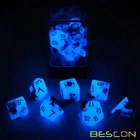Bescon -Tone Glow-in-the-Dark Polyhedral Dice Set BLUE DAWN, Luminous RPG Dice Set d4 d6 d8 d10 d12 d20 d% Brick Box Pack Bescon's -Tone Glow-in-the-Dark Series from great idea of Hague. This is dice set of BLUE DAWN! Dice color: Pearl black+Blue; The blue part glows in dark (after absorbing light). Each set includes a 4,6,8,10, 12, and 20 sided dice, along with a percentile die. Classtic Brick Box Packaging Quality control: No cracks, chips or damage. Every dice included is inspected before being packaged, ensuring that you'll only get the best dice here! Use as a DND dice set, Pathfinder, the Gathering or any other game where you need lots of dice. Bescon's -Tone Glow-in-the-Dark Series from great idea of Hague. This is dice set of BLUE DAWN! Dice color: Pearl black+Blue; The blue part glows in dark (after absorbing light);Each set includes a 4,6,8,10, 12, and 20 sided dice, along with a percentile die. Classtic Brick Box Packaging Quality control: No cracks, chips or damage. Every dice included is inspected before being packaged, ensuring that you'll only get the best dice here! Use as a DND dice set, Pathfinder, the Gathering or any other game where you need lots of dice.