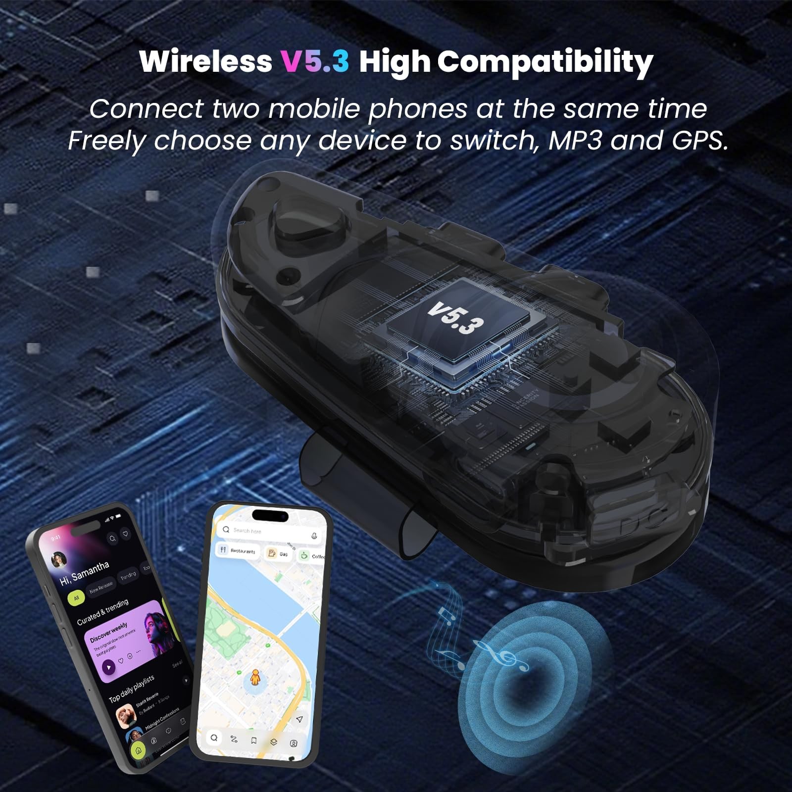 Motorcycle Helmet Speakers 55+ Hours Work Time Helmet Headset with Hi-Fi Sound Quality Dual Noise Reduction IPX6 Automatic Answer/Call Music Control/AI Voice/Soft & Hard Mic 【Multifunctional Motorcycle Helmet Speakers】Motorcycle Helmet Headset Wireless Technology, connects two mobile phones at the same time, enjoy the use of streaming Wireless 5.3 music and listen to GPS voice guidance, allowing you to enjoy the ride safely and happily. Note: This motorcycle accessories is a single person use helmet speakers, it is unable to connect to other brands of headsets. 【Hi-Fi Stereo & Double Noise Cancellation】Motorcycle Helmet Speakers Configuration 40mm graphene diaphragm for excellent sound quality in music and calls. The speaker is equipped with dual intelligent noise reduction technologies, CVC&DSP, which effectively reduce ambient noise, while the windproof microphone ensures you enjoy clear call quality. 【Long Battery Life & Fast Charging】motorcycle helmet speaker is equipped with a 1200mAh high-capacity battery and a high-voltage chip, supports TYPE-C fast charging, just charge for 2 hours, the working time can reach 55 hours and the standby time can reach 500 hours, support to display battery on mobile . When the battery level is below 20%, a low battery reminder will appear so you don't have to worry about battery life. 【IPX6 Waterproof & Playback Control】The New LX3 Motorcycle Helmet Speakers is IPX6 waterproof help you handle all weather conditions, such as dust, rain, storm, snow and low temperature of -20°F. The helmet headset multi-function button allows for easy control of music playback/pause. Press the plus or minus button shortly to play the previous/next track, and press and hold to adjust the volume. 【Auto Answer & AI Voice Assistant】The motorcycle helmet speakers can automatically answer hands-free communications in 10s. You can answer calls more safely and conveniently, without removing your hands from the handlebars or fiddling with your . Simply press and hold the M button on the helmet headset for 2s to easily activate voice assistants or Siri for various tasks without diverting your attention from the road. 【Easy Installation】Our helmet speakers are easy to install and compatible with all types of helmets. Important Note: Please check if your helmet can accommodate this product before purchase. Measure the speaker groove section on your helmet (speaker thickness: 0.6 inches, width: 1.77 inches). If there is no available space, you may need to cut a hole in the helmet lining to install the motorcycle headphones. 【Perfect Accessories for Motorcycle Enthusiasts】Looking for the best Accessories for motorcycle riders? Look no further! Our Motorcycle Helmet Speakers make an ideal Accessories for both men and women who love motorcycles. Whether it's for a birthday, christmas, father's day, mother's day, anniversary, or special occasion, these speakers are a unique and practical choice that will surely impress any motorcycle enthusiast. 【Lightweight Design】This helmet headphones boasts exceptional performance and battery life, yet it is as light as a feather, weighing only 0.15 pounds. Compared to other headphones, this model is 30% lighter, making it effortless to wear on a helmet. To change the language: While the helmet headset are powered on, ensure they are disconnected from your , then double-press the multi-function button to switch the language.