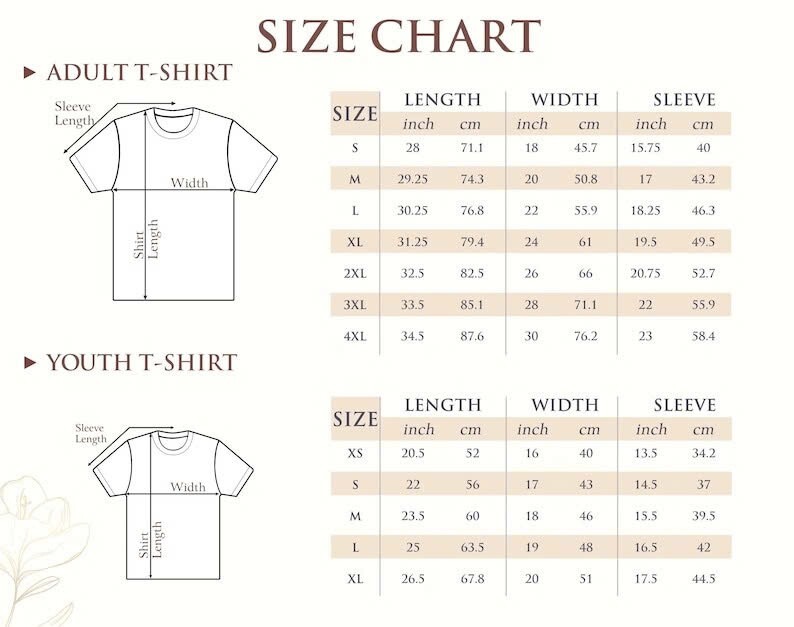 WELCOME TO OUR STORE T-SHIRT TYPE * If you are looking for a T-shirt for yourself or a meaningful gift for a loved one, our store is the perfect choice for you to find the product you like. * We offer a variety of t-shirt designs, meeting many different tastes, from simple styles to outstanding, personality designs. To help you choose the most suitable product, we have attached a detailed size chart. You can refer to the size chart to choose the right shirt size to suit your needs and preferences. PRODUCT DESCRIPTION: *Welcome to our t-shirt collection! We offer high-quality digitally printed t-shirts that provide both comfort and style for you. · Material: 100% soft, breathable cotton, keeping you comfortable all day long. · Printing Type: High-quality digital printing, vivid and durable, ensuring that the design stays fresh and sharp even after multiple washes. · Available Sizes: S, M, L, XL, 2XL, 3XL, 4XL. Ensuring a perfect fit for various body types and preferences. *Our t-shirts are not just everyday wear; they are also an ideal choice to express your personal style. Whether you?re looking for a thoughtful gift for a loved one or a comfortable shirt for yourself, we are committed to delivering top-quality products and excellent service. Thank you for choosing our products, we are always here to serve you! CARE INSTRUCTIONS: Machine wash: Use warm water (up to 40°C or 105°F) Bleaching: Use non-chlorine bleach if needed Tumble dry: Medium heat to keep the fabric in good condition Do not iron: To prevent damaging the printed design Do not dry clean: Hand wash or gentle machine wash for better durability SHIPPING: Your order will be processed immediately after you complete the purchase, with an estimated shipping time of 5-7 days (or possibly faster depending on your delivery address). We use trusted shipping services from USPS and UPS to ensure that your order will be delivered on time, safely, and quickly. Note: We DO NOT SHIP to P.O. boxes or APO addresses. CUSTOMER SERVICE: Due to lighting effects and differences in computer screen color, the actual color of the product may vary slightly from the images on the website. However, we are committed to providing high-quality products, and most customers are very satisfied with what they receive from us. Return Policy: We do not accept returns due to customers choosing the wrong size. However, if the product is damaged or has printing defects, we are happy to assist with returns or exchanges immediately. CUSTOMER FEEDBACK: Your satisfaction is our top priority. If you are happy with your product and service, please take a moment to leave positive feedback for us. Your feedback is a great motivation for us to improve and serve you even better. If you are not satisfied with your purchase or have any issues, please contact us immediately so we can assist you in resolving the problem. We are committed to finding the best solution to ensure your satisfaction. Thank you so much, I hope you have an amazing day!