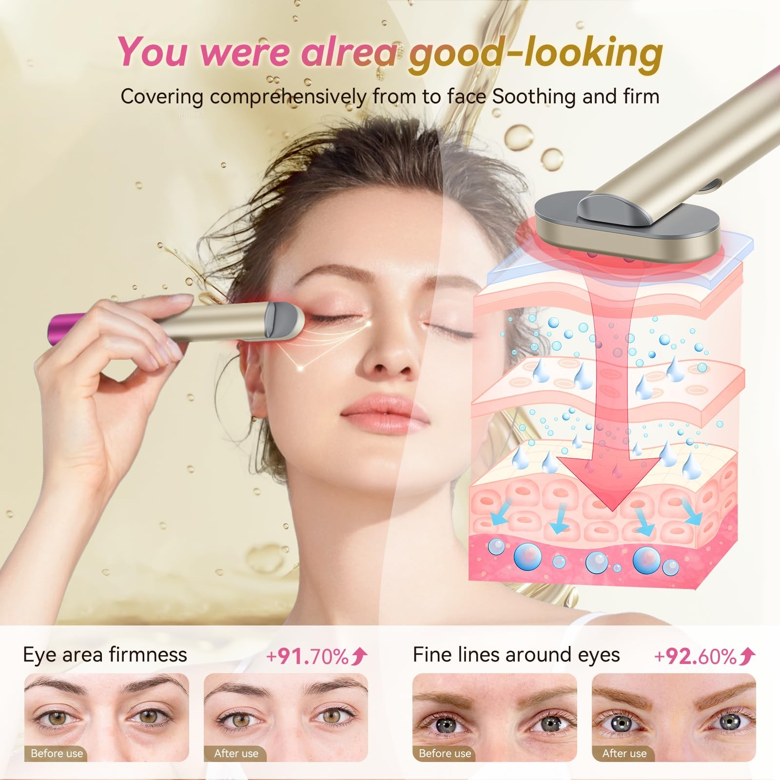 1 7-in-1 Skincare Wand: Red Light (650~680nm), Green Light (540~560nm),Blue Light (430~450nm),Orange Light (590~610nm),Purple Light (380~420nm),Greenish Light (460nm-490nm),Light Green Light (380-680nm).These 7 colors of light are tailored to Portable Design: The innovative LED therapy stick is compact and easy to use, ensuring you can carry it anywhere. It operates without side effects, delivering pure light and energy that make your skin smoother and more refined. The natural light waves emitted by the LED enhance skin texture, making it more delicate. Deep Nourishment: The red light therapy stick penetrates deeply to nourish the skin, enhancing absorption and ensuring a radiant, firm, and elastic complexion. Suitable for all skin types, this device is perfect for both men and women. Home Skincare: Enjoy convenient and efficient skincare at home, eliminating the need for beauty salon visits. The 180° rotating massage head ensures comprehensive care for every part of your skin, including the eyes, face, neck, hands, and back. For optimal results, use it 3-5 times a week for 5-10 minutes each session. Safe and Eco-Friendly: Utilizing the latest light technology and high-quality materials, the LED eye stick is durable, safe, natural, and reusable. It is ideal for most skin types and helps relieve skin pressure, especially after long working hours. Effective Care: Experience a safe and natural skincare routine with the LED therapy stick. This device offers efficient and healthy skincare, making it a perfect gift for friends and family during the holidays. Let’s achieve greater beauty and confidence together! Red Light Therapy for Face and Eye Skincare Equipment at Home