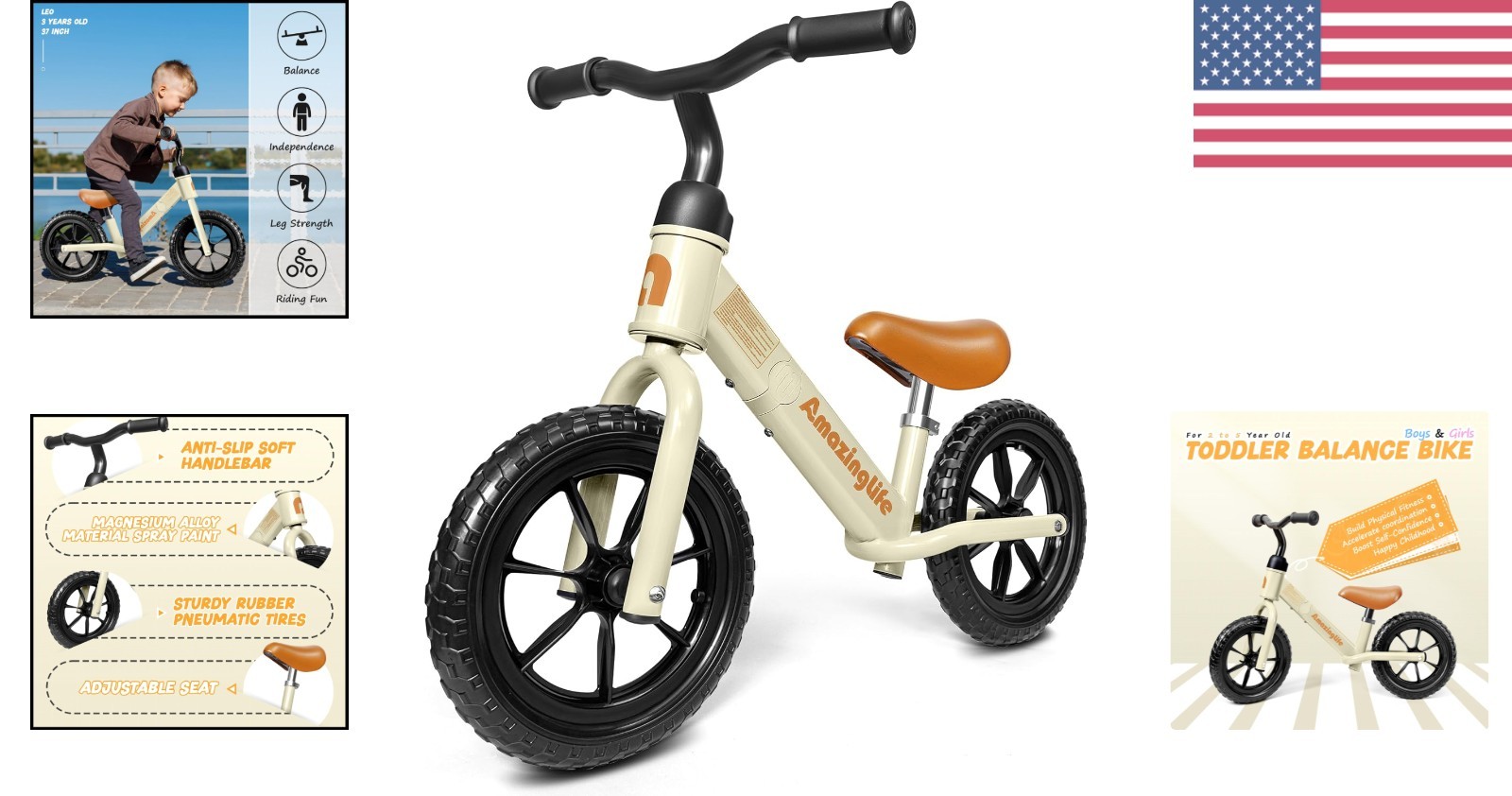Perfect Birthday Gift: Toddler Balance Bike for Ages 2-5, 110 lbs Limit ‹ › ‹ › ‹ › ‹ › ‹ › ‹ › ‹ › ‹ › Toddler Balance Bike Perfect Birthday Gift: Designed for ages 2-5, this toddler balance bike is not just a gift; it’s an opportunity for your little one to practice balance, build confidence, and enhance their motor skills. Features: - Constructed with a robust carbon steel frame capable of supporting up to 110 lbs. - Non-slip handles and a soft, plush seat provide maximum comfort for your child during their riding adventures. - Unique pedal-less design allows toddlers to focus solely on balance, featuring a 135° steering limit for safer turning. - All-terrain tires offer an exciting riding experience both indoors and outdoors, encouraging exploration. - Effortlessly assembled in minutes with the included installation tools. - Height-adjustable seat and handlebars to grow with your child from age 2 to 5. Benefits: Encourages physical activity and enhances coordination skills. Boosts self-esteem as children learn to ride independently. Durable materials ensure longevity, withstanding the of time and play. Safe riding experience for your most precious cargo. Why choose our Toddler Balance Bike? This balance bike is more than just a toy; it’s a tool for growth and development. The ergonomically designed structure promotes safe, enjoyable riding that builds critical skills in your child. Watch them thrive as they gain confidence and enjoy hours of fun! Your search for the perfect birthday gift ends here—give your child the joy of independence with our Toddler Balance Bike! Shipping Free & Fast Shipping - We offer free shipping to most of the USA with a normal delivery time of 3-7 days. However, due to the current situation, additional delivery time (up to 3 weeks) may be required for some items. Alternative Carriers - We may use alternative carriers (e.g. USPS, FedEx, UPS, etc.) to ensure your package arrives safely and on time. Due to the use of multiple carriers, we are unable to provide a tracking number automatically. Handling Time - Orders are processed and shipped within 1-2 business days of receiving cleared payment. Shipping Restrictions - Shipping to Alaska, Hawaii, Puerto Rico, Guam, and other US territories may incur shipping charges or delivery restrictions. Please contact us before ordering, or your order can be refunded/cancelled. State Restrictions - There may be restrictions based on your state of purchase. For example, certain items may not be shipped to California due to state regulations. Contact for Tracking Updates - If you require tracking updates or have any concerns about the delivery of your order, please feel free to contact us, and we will be happy to assist you. Return 30-Day Hassle-Free Returns - We want you to be completely satisfied with your purchase. If you are not, you can return the item within 30 days of receiving it for a full refund or exchange. Easy Return Process - To start a return, simply contact us and we will provide you with a prepaid return shipping label and detailed instructions. Restocking Fee - There are no restocking fees for returns. However, the buyer is responsible for return shipping costs if the return is not due to a seller's error. Refund Processing Time - Refunds will be processed within 5 business days of receiving the returned item in its condition. Payment We accept all major credit cards, PayPal, and Apple Pay for your convenience. Your payment information is secure and encrypted to ensure a safe and seamless transaction. Please complete your payment within 3 days of purchase to avoid any delays in shipping. Feedback Your feedback is extremely important to us. We strive to provide the best products and customer service possible. If you are satisfied with your purchase, please take a moment to leave us a positive review. If you have any concerns or issues with your order, please contact us before leaving negative feedback. We are committed to resolving any problems and ensuring your satisfaction. Contact Us If you have any questions or concerns, please feel free to out to our customer support team. You can contact us through the eBay messaging system. We are available Monday to Friday, 9:00 am to 5:00 pm EST, and we will do our best to respond to your inquiry within 24 hours. Buy it now and enjoy a pleasant shopping experience! Unit Quantity: 1 Material: Aluminum,Carbon Steel Features: Adjustable Seat,Adjustable Handlebar,135° Steering Limit,No Pedals,All-terrain Tyres,Non-slip Handles,Soft Seat Bike Type: Balance Bike Frame Size: Medium Wheel Size: 10 in Suspension Type: No Suspension Color: Beige Number of Speeds: 1 Speed Brake Type: No Brakes Handlebar Type: Standard Tire Type: All-terrain Shifter Style: None Gear Change Mechanism: None Item Weight: 10 lb