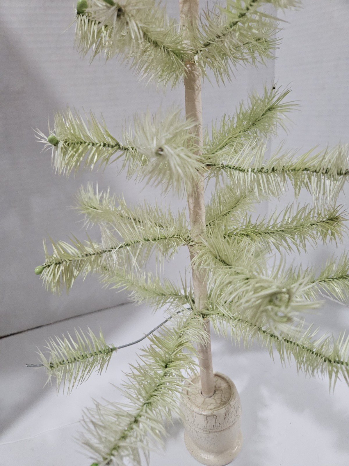 Its a beautiful light green 18" tree. Some of the beads are missing on end of a few of the branches but the branches are intact and look as they should. 1 limb that is pictured is missing some of its foliage and bead. Its truly a sweet tree and is really neat! Free Shipping in U.S.
