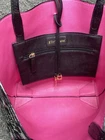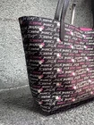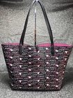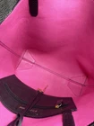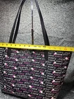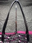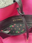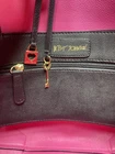 This Betsey Johnson tote is a stylish accessory that will add a touch of elegance to any outfit. With a spacious interior measuring 17" in width, 11" in height, and 5" in depth, it's perfect for carrying your everyday essentials. The exterior is made of high-quality faux leather in black, with pink hardware accents providing a pop of color. The tote features black handles/straps and includes a cute bag charm to complete the look. The polyester-lined interior is also pink and provides ample space for your belongings. The tote is categorized under Clothing, Shoes & Accessories, Women, Women's Bags & Handbags. It is a medium-sized tote that will make a great addition to any woman's wardrobe. Very clean, like new condition!