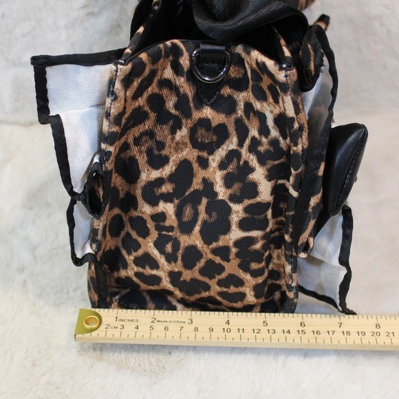 A stylish Betsy Johnson tote bag showcasing a bold leopard print. This eye-catching accessory features decorative bows and a charming pearl and key embellishment. Its structured design offers ample space for your essentials, making it perfect for everyday errands or a fun night out. Measurements: • Height: 10 in • Width: 12 in • Depth: 6 in Exterior Material: Faux Leather, Plastic Style: Top Handle Bag Exterior Color: Black Department: Women Product Line: Luv Betsey by Betsy Johnson Lining Color: White Handle/Strap Material: Nylon, Polyurethane Handle/Strap Color: Black Hardware Color: Silver, Black Accessories: Key Holder, Bag Charm, Key Chain Keywords: Betsy Johnson, leopard print, tote bag, bow detail, charm accessory, animal print, fashion handbag, day bag, statement piece, quirky, designer