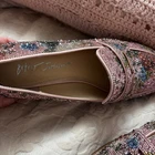 The Betsey Johnson Rhinestone Floral Penny Loafers in SB-Aron Pink, Size 9, are a stylish and feminine option for casual occasions during the spring and summer seasons. These slip-on flats feature a floral pattern accented with rhinestones, adding a touch of glam to any outfit. Made by the iconic brand Betsey Johnson, these loafers are designed for comfort with a medium shoe width and a rhinestone upper material, making them a chic and trendy choice for women who appreciate both style and quality.