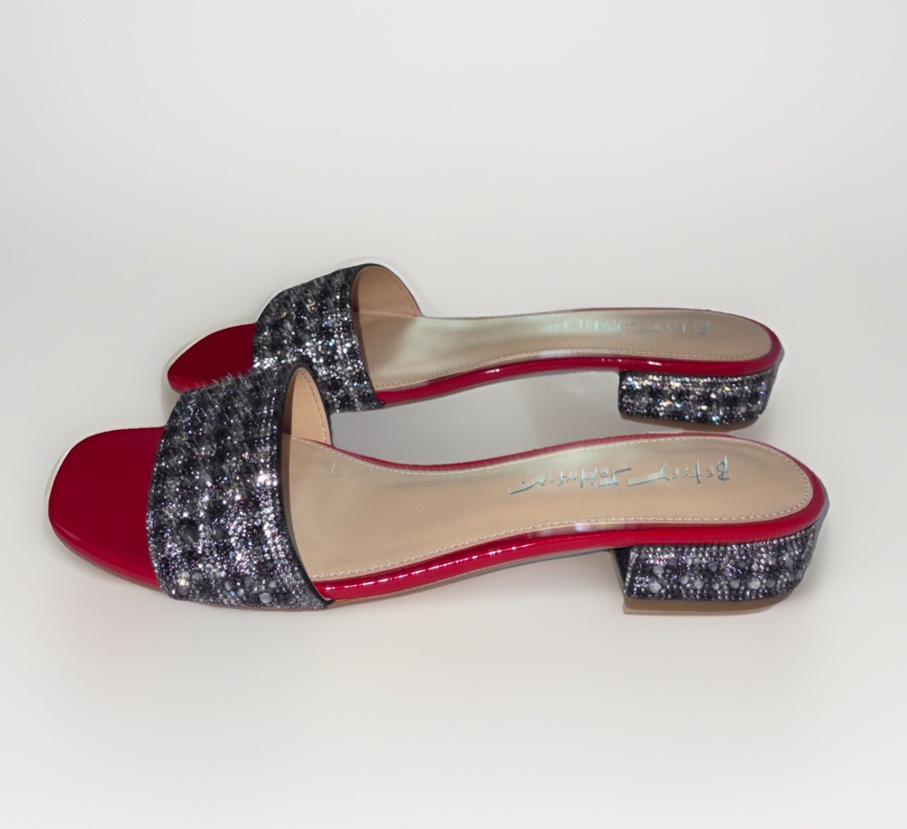 BETSEY JOHNSON Slide Evening Sandals in a playful Gingham Multi print! Size 8.5, true to fit • Eye-catching gingham multi-color pattern • Easy slip-on design for comfort and convenience • Perfect for evenings, casual events, or lounging in style • Brand new with box