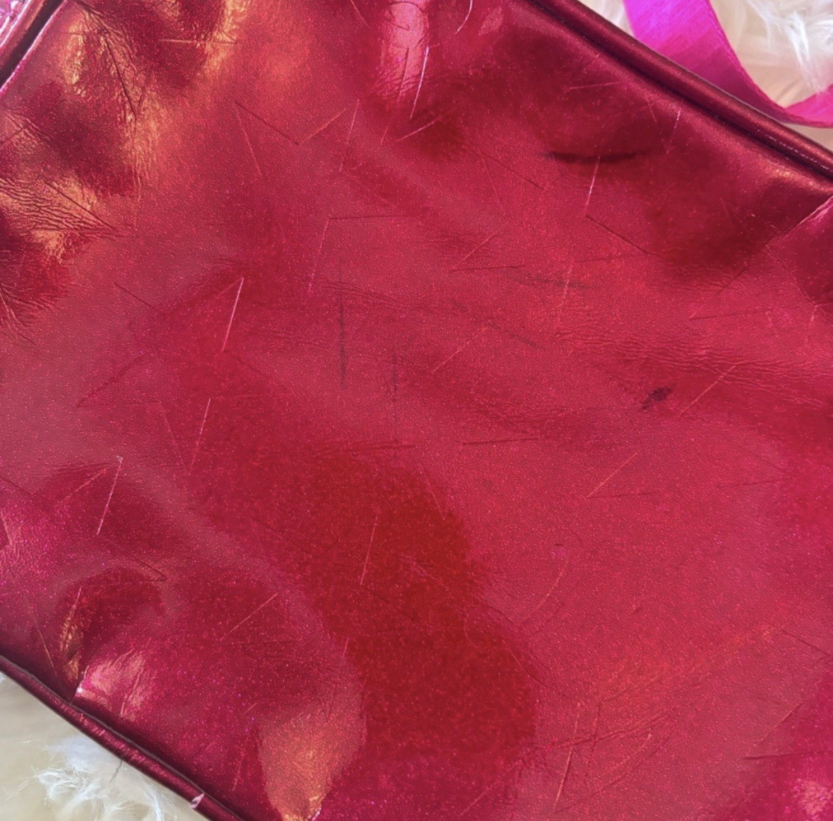 Hot pink Betsey Johnson betseyville pink vinyl bag. A few marks on the back as shown but otherwise in great condition