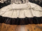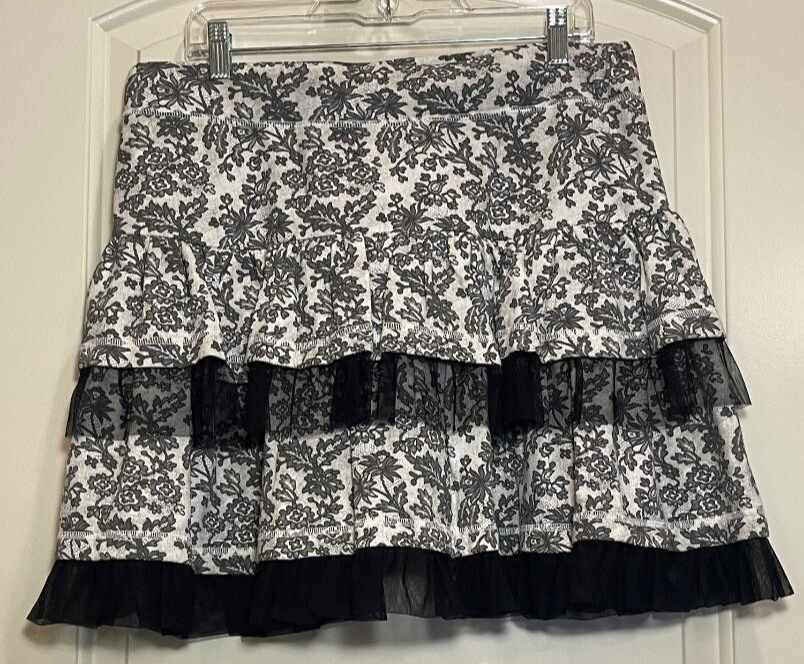 The Betsy Johnson Women's Vintage Black/White Skirt is a stylish and flirty piece with a floral pattern and knee-length tulle trim layers. Made of cotton, this pull-on skirt features a drawstring waist that ties for a perfect fit. With a retro 80s vibe and perfect for a party or special occasion, this skirt embodies the fun and playful style that Betsey Johnson is known for. Perfect for a size L, this skirt is a vintage-inspired addition to any woman's wardrobe.