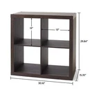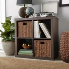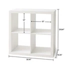Add function and style to your home with the Better Homes & Gardens 4-Cube Storage Organizer. Available in multiple finishes, including both solid and wood grain options, this cube organizer features four 13" x 15" x 13" compartments in a 2x2 configuration, the perfect size to display books, collectibles, photos, artwork, storage bins and baskets. An open back design makes it easy to manage cords and cables. The top panel of this sturdy bookcase supports up to 100 lbs and each cube space supports up to 30 lbs. Combine it with other Better Homes & Gardens Cube Organizers and Cube Storage Bins (sold separately) to create a complete, customized storage and display system. Easy to assemble, the Better Homes & Gardens 4-Cube Storage Organizer is perfect for your office, living room, den, playroom and more. Features four 13" x 15" x 13" compartments Modern, open back design for easy cord management Compatible with Better Homes & Gardens Cube Storage Bins (sold separately) Top panel can support up to 100 lbs and each cube supports up to 30 lbs Can be combined with other Better Homes & Gardens Storage Organizers (sold separately) Materials: MDF, particle board Easy to assemble with included instructions and video assembly guide (no additional tools required) Finishes available: Textured White (BH61100005302WH), Tobacco Oak (BH61100005302TO), Rustic Gray (BHD036118664015), Natural (BH61100005302NA), Solid Black (BHD036118664013), Gray (BHD036118664014) and Vintage Walnut (BHD036118664016) Package size: 18.11" x 34.49" x 8.58" (37.47 lbs) Assembled weight: 31.7 lbs Assembled dimensions: 30.16" W x 15.35" D x 29.84" H