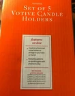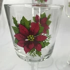Better Homes and Gardens Stemmed Glass Votive Candle Holders Set of 5 with a poinsettia pattern on the sides Approx height: 5-3/4", 6-1/2", 7-1/2", 8-1/8", 9" Come in original box with styrofoam inserts Use with votive or tealight candles Good condition, with a few small imperfections in the glass A festive collection to add to your holiday décor No candles included (shown for display purposes only)