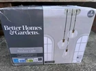 Nickel finish . Elevate the ambiance of your living space with this Better Homes & Gardens 61" Architectural 3-Light Pendant Ceiling Light. The unique combination of glass and nickel materials provides a modern and elegant look that will complement any decor. This pendant light fixture is perfect for adding a touch of sophistication to your home, whether it's for your kitchen, dining room, or living room. With its three light sensors, this pendant light offers ample illumination to brighten up any space. The sensor type is light, and the features include a 3-light design that provides a warm and inviting atmosphere. The brand is Better Homes & Gardens, and the type is a pendant, making it a stylish and functional addition to your home.