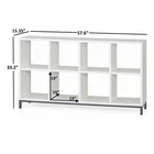 The Better Homes & Gardens 8-Cube Storage Organizer with Metal Base features eight 13" x 15" x 13" compartments that are perfectly sized for displaying fabric baskets, books, collectibles, photography, artwork, small electronics, and more. With a sturdy metal base and legs, this bookcase can support up to 100 pounds on the top panel and 30 pounds inside each cube. The open-back design of cubes makes managing cords and cables of electronic devices easy. Available in multiple finishes, the Better Homes & Gardens 8-Cube Storage Organizer with Metal Base fits with almost any decor. Add this accent piece that is as functional as it is fashionable to your living room, family room, den, home office, dining room, and more. Better Homes & Gardens 8-Cube Storage Organizer with Metal Base, Espresso Stylish cube organizer and bookcase with a metal base and legs to provide sturdy support Features eight 13" x 15" x 13" open back cube spaces Compatible with Better Homes & Gardens Cube Storage Bins (sold separately) Frame and shelves measure 1" (25mm) in thickness Top panel can support up to 100 lbs, each cube supports up to 30 lbs Dimensions: 57.6" W x 15.35" D x 33.19" H Weight: 56.76 lbs Materials: particleboard, medium density fiberboard, iron, paperboard and polypropylene Can be combined with other Better Homes & Gardens Storage Organizers and Shelves (sold separately) Finishes available: Rustic Gray (BH17-084-098-06), Espresso (BH17-084-098-03), White (BH17-084-098-09) and Vintage Walnut (BH48-084-099-35) Includes wall attachment system for safety Easy to assemble with included instructions Tools required: hammer, Phillips head screwdriver, flat head screwdriver Site to Store Pickup Note: This item is packaged in one large box that may not fit in a standard-sized vehicle. Please make sure you have a large car or truck for store pickup. Package dimensions: 60" x 7.5" x 18" Package weight: 65.89 lbs