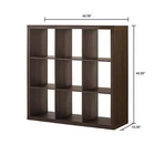Add function and style to your home with the Better Homes & Gardens 9-Cube Storage Organizer. Available in multiple finishes, including both solid and wood grain options, this cube organizer features nine 13" x 15" x 13" compartments, the perfect size to display books, collectibles, photos, artwork, storage bins and baskets. An open back design makes it easy to manage cords and cables. The top panel of this sturdy bookcase supports up to 100 lbs and each cube supports up to 30 lbs. Combine it with other Better Homes & Gardens Cube Organizers and Cube Storage Bins (sold separately) to create a complete, customized storage and display system. Easy to assemble with included wall attachment system, the Better Homes & Gardens 9-Cube Storage Organizer is perfect for your office, living room, den, playroom and more. Features nine 13" x 15" x 13" compartments Modern, open back design for easy cord management Compatible with Better Homes & Gardens Cube Storage Bins (sold separately) Top panel can support up to 100 lbs and each cube supports up to 30 lbs Can be combined with other Better Homes & Gardens Cube Storage Organizers (sold separately) Materials: MDF, particle board Attaches to the wall with included safety strap Easy to assemble with included instructions and video assembly guide (hammer, Phillips head screwdriver & flat head screwdriver required) Finishes available: Textured (BHD036118664030), Tobacco Oak (BHD036118664031), Rustic Gray (BHD036118664029), Natural (BHD036118664032), Solid Black (BHD036118664027) and Gray (BHD036118664028) Package size: 49.37" x 9.96" x 18.11" (71.06 lbs) Assembled weight: 61.16 lbs Assembled dimensions: 43.78" W x 15.35" D x 43.35" H For customer support or assembly assistance, visit or call 1-800-729-1569.