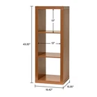 Add function and style to your home with the Better Homes & Gardens 3 Cube Storage Organizer. Available in a variety of finishes, including solid wood and wood grain options, this cube organizer is perfect for displaying books, collectibles, photos, artwork, bins, and baskets with three 13" x 15" x 13" compartments. The open back allows for easy organization of cords and cables. This sturdy bookcase can be positioned vertically or horizontally to maximize space. The top panel supports up to 135 pounds when positioned vertically and 77 pounds when positioned horizontally. Combine with other Better Homes & Gardens cube organizers and cube storage boxes (sold separately) to create a complete, personalized storage and display system. Easy to assemble and with an included wall mounting system, the Better Homes & Gardens 3 Compartment Storage Box is perfect for your office, family room, playroom, and more. Features three 13" x 15" x 13" compartments Modern open back design for easy cord organization Compatible with Better Homes & Gardens cube storage boxes (sold separately) Versatile design for vertical or horizontal storage Top panel holds 135 pounds when vertical and 77 pounds when horizontal; each box holds up to 30 pounds Combines with other Better Homes & Gardens boxes (sold separately) Material: MDF, particle board Attaches to wall with included safety straps Easy assembly with instructions included (hammer and Phillips screwdriver required) Available finishes: Textured White (BHD036118664010), Tobacco Oak (BHD036118664011), Light Honey (BH5336278612085), Country Gray (BHD036118664009), Charcoal (BH5336278612084) and Acorn (BH5336278612086) Packaged dimensions: 44.49" x 6.38" x 18.11" (32.82 lbs) Assembled weight: 27.06 lbs Assembled dimensions: 16.42" W x 15.35" D x 43.35" H