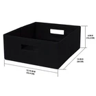 Better Homes & Gardens Half-Size Fabric Storage Bin, Black These Better Homes and Gardens Black Half-Size Fabric Cube Storage Bins are a versatile and indispensable item for your home, office or small business. You can use them to store documents, files, toys, electronics, supplies, small equipment, kids to adult clothes and much more. This storage bin measures 12.75" x 6" x 15". They have cut-out handles to make it easy to carry and transport them. With a variety of colors to choose from, you'll be able to perfectly match your home decor when you get organized with our Better Homes & Gardens Fabric Cube Storage Bins. Create a clean and comfortable home with the Better Homes & Gardens Half-Size Fabric Storage Bin These collapsible, easy-to-carry bin is a great way to keep magazines, books, toys, craft supplies, kids or adult clothes, and other smaller items organized With two handle cut outs, you can easily transport this bin from room to room without fuss Can be used with our Better Homes & Gardens cube organizers (sold separately) or independently Dimensions of storage bin: 12.75" Wide x 6" Height x 15" Deep