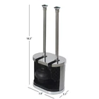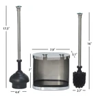 Product details The Better Homes and Gardens Brushed Nickel Bowl Brush & Plunger Set is two items in one, it does double duty because it contains a toilet brush and a plunger. Smartly designed, compact and portable, the brushed nickel housing is accented by a rich chrome trim. One side is open to allow proper air circulation. It has a removable drip tray that will help collect water. The handles are perfectly sized to grip and get the job done. It fits nicely in a corner, behind bathroom garbage cans, trash baskets or placed near the back of toilet bowls. This set is also designed to mix and match with other Better Homes and Gardens two-tone brushed silver bathroom accessories. Wipe clean the canister and rinse and air dry brush and plunger. Better Homes & Gardens Bowl Brush and Plunger set open-back and suspended design helps wet toilet brush and plunger heads dry, reducing odors after bathroom maintenance Sturdy plastic and metal construction is a reliable and aesthetically pleasing addition to any bathroom Discretely store your toilet brush and plunger in this 2-in-1 stylish caddy Overall dimensions W 7.87" x D 5.12" x H 18.31" Wipe clean the canister and rinse and air dry brush and plunger