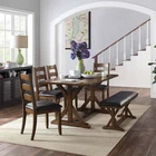 The Granary Modern Farmhouse Dining Table brings classic farmhouse charm into your dining room. The table is hand-finished in rich, warm brown tones that enhance the natural beauty of the wood grains. The trestle style base adds an architectural flare to the table elevating its character. Crafted from solid wood, the durable construction ensures that you will be enjoying this table for many years to come. It comfortably accommodates up to six people making it ideal for hosting family dinners, holiday gatherings or even game nights with friends. Combine the table with the Granary Modern Farmhouse Chairs, set of 2, and Granary Modern Farmhouse Padded Bench Seat to complete your dining set arrangement. Chairs 2-pack and Bench seat are each sold individually. Add the Granary Dining Table to your home today and make your dining room a favorite room in your home. The perfect blend of modern and classic design that will complement almost any decor, from contemporary to rustic to traditional Sturdy construction features crossed legs and a trestle style base Hand-applied, Aged Brown Ash finish enhances the beautiful wood grain Can be used in the dining room, kitchen or as a creative alternative to your home office desk Large open table top provides a spacious area for sharing those fun family dinners Coordinates with the Better Homes & Gardens Granary Modern Farmhouse dining bench and the Better Homes & Gardens Granary Modern Farmhouse Dining Chairs (set of 2) (all sold separately) Complements other items in the Granary Modern Farmhouse Collection Easy assembly