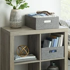 Better Homes & Gardens Half-Size Fabric Storage Bin, 2 Pack, Gray Product details These Better Homes and Gardens Gray Half-Size Fabric Cube Storage Bins are a versatile and indispensable item for your home, office or small business. You can use them to store documents, files, toys, electronics, supplies, small equipment, kids to adult clothes and much more. This storage bin measures 12.75" x 6" x 15"with two handles to make it easy to carry and transport them. With a variety of colors to choose from, you'll be able to perfectly match your home decor when you get organized with our Better Homes & Gardens Fabric Cube Storage Bins. Includes 2 storage cubes These collapsible, easy-to-carry bin is a great way to keep magazines, books, toys, craft supplies, kids or adult clothes, and other smaller items organized With two handle cut outs, you can easily transport this bin from room to room without fuss Can be used with our Better Homes & Gardens cube organizers (sold separately) or independently Can be used with our Better Homes & Gardens cube organizers (sold separately) or independently Also available in Gray, Black, Tan and Ivory Dimensions of storage bin: 12.75" Wide x 6" Height x 15" Deep