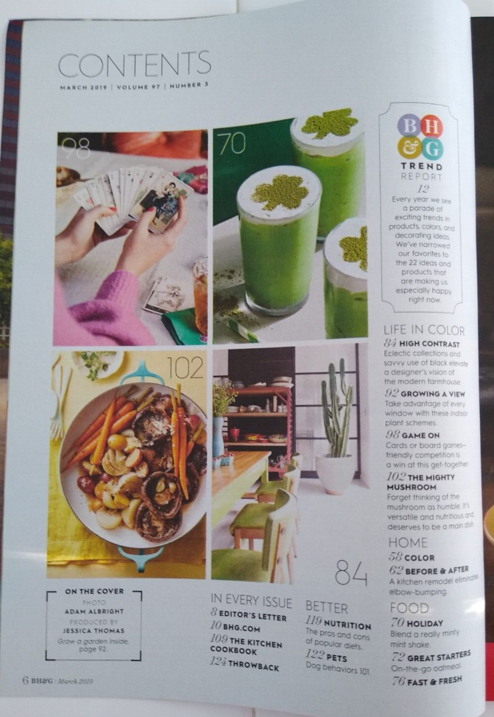 Up for sale is a BETTER HOMES & GARDEN MAGAZINE, MARCH 2019. A few of the articles include the trend issue (what's next in home, garden and food), host a game night, design ideas, etc. This magazine is in very good condition. We do combine shipping on multiple purchases. If you would like an estimate, please email before purchasing. On multiple purchases, please wait for a combined shipping invoice before paying.