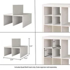 Unlock the full potential of cube storage with the Better Homes & Gardens Quad Shelf Cube Organizer Insert and the rest of Better Homes & Gardens’ line of cube organizer accessories and inserts. The Quad divider is designed to fit seamlessly into Better Homes & Gardens Cube Storage Organizer (sold separately) compartments. Effortlessly divide a cube shelf into four functional sections, to make the most of every inch of available space. You’ll find uses for the Quad Shelf in virtually every room of your house. Use it in your office or craft room to organize and easily access yarn, rolls of paper and vinyl, paint cans and more. Or add it to a cube organizer in your dining room or kitchen to store bottles. The possibilities are endless! Divides cube shelves into four separate sections for various items such as books, baskets, toys, clothes, office supplies, and more, allowing you to keep everything neatly in place Designed to be used in Better Homes & Gardens Cube Organizers (sold separately) Shelf can easily support up to 4.4 lbs Check out the rest of the Better Homes & Gardens cube organizer accessories including the H Shelf , X Shelf and Bottle Storage inserts (sold separately) Materials: particle board Easy to assemble and install (Phillips head screwdriver required) Finishes available: White Texture (BH5336278612063) & Tobacco Oak (BH5336278612064) Package size: 17.91" x 1.46" x 15.16" (6.64 lbs) Assembled weight: 5.63 lbs Assembled dimensions: 12.91" W x 15.12" D x 12.91" H