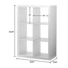 Add function and style to your home with the Better Homes & Gardens 6-Cube Storage Organizer. Available in multiple finishes, including both solid and wood grain options, this cube organizer features six 13" x 15" x 13" compartments, the perfect size to display books, collectibles, photos, artwork, storage bins and baskets. An open back design makes it easy to manage cords and cables. This sturdy bookcase can stand vertically or horizontally to best suit your needs and space. The top panel supports up to 100 lbs and each cube supports up to 51 lbs. Combine it with other Better Homes & Gardens Cube Organizers and Cube Storage Bins (sold separately) to create a complete, customized storage and display system. Easy to assemble with included wall attachment system, the Better Homes & Gardens 6-Cube Storage Organizer is perfect for your office, living room, den, playroom and more. Modern, open back design for easy cord management Features six 13" x 15" x 13" compartments Compatible with Better Homes & Gardens Cube Storage Bins (sold separately) Versatile design allows for vertical or horizontal placement Top panel can support up to 100 lbs, each cube supports up to 51 lbs Can be combined with other Better Homes & Gardens Cube Storage Organizers (sold separately) Materials: MDF, particle board, paperboard and iron Attaches to the wall with included safety strap Easy to assemble with included instructions (hammer & Phillips head screwdriver required) Finishes available: White Texture (BHD036118664020), Tobacco Oak (BHD036118664021), Natural (BHD036118664022), Rustic Gray (BHD036118664019), Solid Black (BHD036118664017) and Gray (BHD036118664018) Package size: 44.49" x 9.25" x 18.11" (53.17 lbs) Assembled weight: 44.88 lbs Assembled dimensions: 30.16" W x 15.35" D x 43.35" H