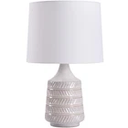 Add light and style to your room with the Better Homes a& Gardens White Ceramic Base Table Lamp with Shade. This modern lamp creates a unique texture look and is perfect for living rooms, family rooms, dens, bedrooms, guest rooms, offices, dorm rooms, and more. The unit measures 17 inches high and will sit easily on any desk, nightstand or end table. This Better Homes & Gardens White Ceramic table lamp is compatible with CFL 13W, LED and incandescent bulbs(not included), so you have total flexibility to light your space as you prefer. 17" Overall Height Product size: 10.5" W x 10.5" L x 17" H Shade size: 9.5" x 10.5" x 8" H Elegant looking with modern style White/Beige 2 colors ceramic base with glazed finish Provides the ideal amount of soft illumination for moderately sized rooms Features a white fabric shade Easy on/off rotary light switch Includes a 5-foot power cord Requires one energy-efficient CFL or LED bulb for use (not included) No assembly required Perfect for living rooms, family rooms, dens, bedrooms, guest rooms, offices, dorm rooms, and more