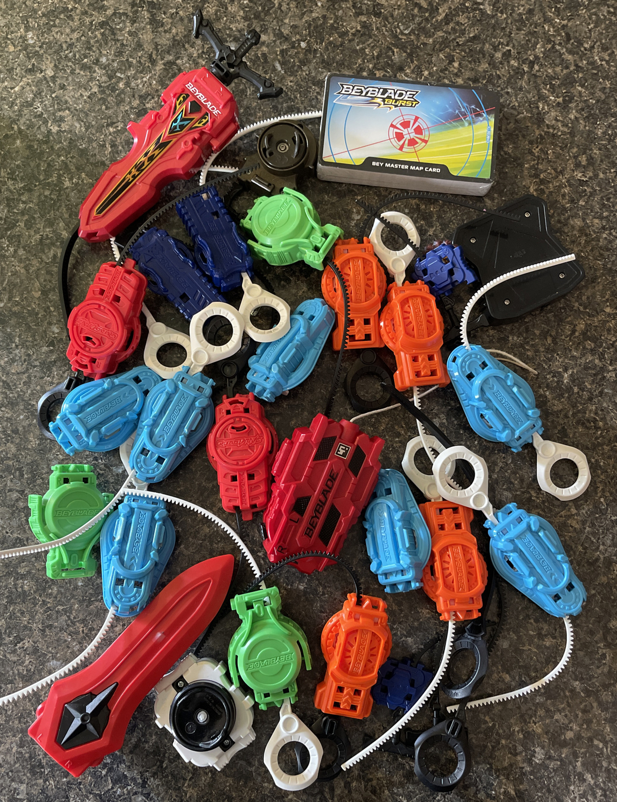 This is a super nice lot of over 40 full beyblades. There are tons of extra beyblades that need put together. Additionally, there are tons of accessories! You will receive everything you see in the pictures!