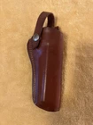 Excellent condition Bianchi leather holster for a .22 Colt New Frontier with 4 1/2” barrel.
