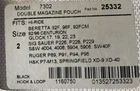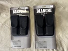Bianchi model 7302 Double Magazine Pouch Hidden Snap Item 25332 Size 2 Injection molded belt loops fit 2.25" belts Vertical or horizontal carry options AccuMold trilaminate construction Ballistic weave exterior Hook & Loop closure Contoured molding Coptex lining Fits: Beretta 92, 96 Series Browning Hi-Power, BDA .380 Glock 17, 19, 22, 23 H&K P7-M13, P2000-V2, P2000SK, USP .40, USP Compact .40 Ruger P89, P91, P94, P95, P97 S&W 4004, 4006, 4006TSW, 5904/5906, 5906TSW, 6904/6906, SW40F, SW40V, SW99, M&P .40 SIG Sauer P226, P226R, P228, P229, P229R, P2022, SP2009, SP2340 Springfield XD-9, XD-40 Walther P99 New Inventory - In original packaging Auction is for one ( 1 ) only 2 available Please see my other auctions Sorry, NO International Shipping