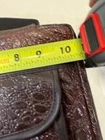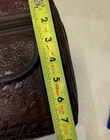 Genuine Leather Book Bag /Carrier to hold Bible, pencils-pens, paper note pad etc. Has a zip outside pocket with hanging cross and 2 inside open pockets. Zips closed all the way around. Handle on top. Approx: 10" x7". Good Condition. Free Shipping (DW-B-17)