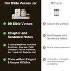 【Bible Journaling Supplies - Embrace God's Wisdom Daily】Our Inspire Bible Verse Glass Jar Features 99 Bible Verses that cater to a Wide Range of Emotions and Feelings. Each Scripture Strip is a Source of Comfort, Inspiration, and Encouragement, helping you Connect with the Divine Words of God and Jesus. 【Mindfulness and Gratitude - Bible Verses for Emotions and Feelings】The Bible Verse Glass Jar Promotes Mindfulness and Gratitude by Encouraging you to Thoughtfully choose a Color-coded Scripture Strip that resonates with your Current Feelings. Reflect on your Emotions, find Solace, and draw Strength from these Profound Scriptures, fostering a Deeper Sense of Spiritual Connection with Jesus. 【Unique "Surprise Me" Feature - Add Excitement to Your Faith Journey】 Our Prayer jar includes a Special "Surprise Me" Section, making it a Unique and Engaging way to explore Bible Verses. This Feature brings an Element of Surprise and Joy, as you never know which Inspiring message you will receive, adding a Delightful Twist to your Spiritual Practice. 【Christian Gifts for Men and Women – Faith Based Gifts】Our Christian Gifts are Perfect for anyone on a Faith Journey. The Hope Jar Bible Verses provide Spiritual Support and Guidance, making it an Ideal Gift for Religious Celebrations, Baptisms, Birthdays Gifts for Christian, and more. Share the Blessings and Strengthen your Loved Ones' Faith with this Thoughtful Present. 【Durable and Reusable】Crafted from High-quality Glass, our Bible Verse Jar is designed for Long-term and Repeated use. The Scripture Strips are made from Premium Paper, ensuring their Durability and Clarity. This Exquisite set comes with a Beautifully Designed Gift Box, making it a perfect Christian gift for Easter, Christmas, Confirmations, and any other Special Occasion.