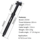 ZOOM 27.2MM Dropper Seatpost Travel 80mm Features: Model: Internal routing cable Type: Hydraulic pressure sealed Material: Aluminum 7050 alloy Travel distance: 80mm Length:370mm Cable length: 150cm Weight: 480+100g Cradle angle: -5~18 degree Surface treatment:Sandblasted black Application: MTB/Gravel/Cyclocross Road bike