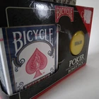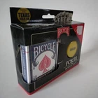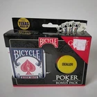 Bicycle Texas Hold Em Poker Set New In Box. The box has some wear from long storage. The interior pieces are still sealed in their cellophane. See pictured for a detailed look at this item. Will ship in a sturdy box. Thanks for the interest.